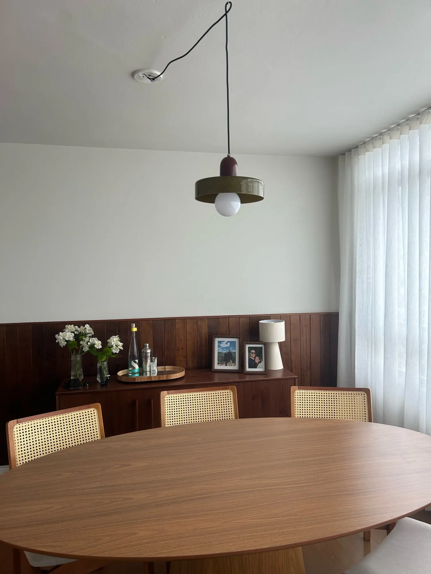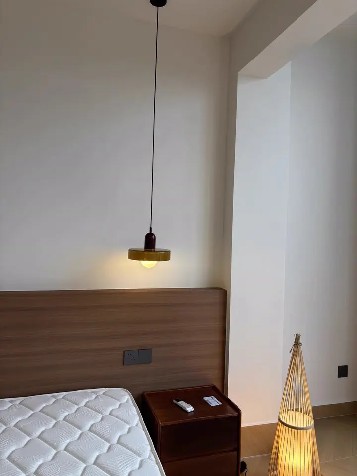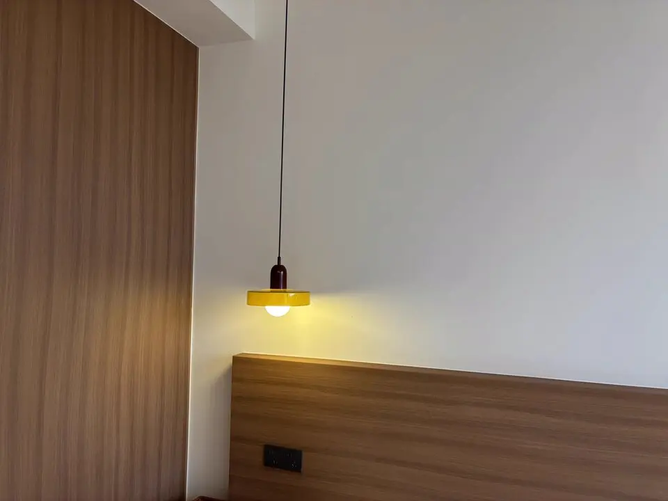 The pendant light showcases a remarkable fusion of creative artistry and contemporary design. This elegant pendant lamp stands out as a masterpiece, merging the classic allure of stained glass with practical modern features.